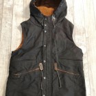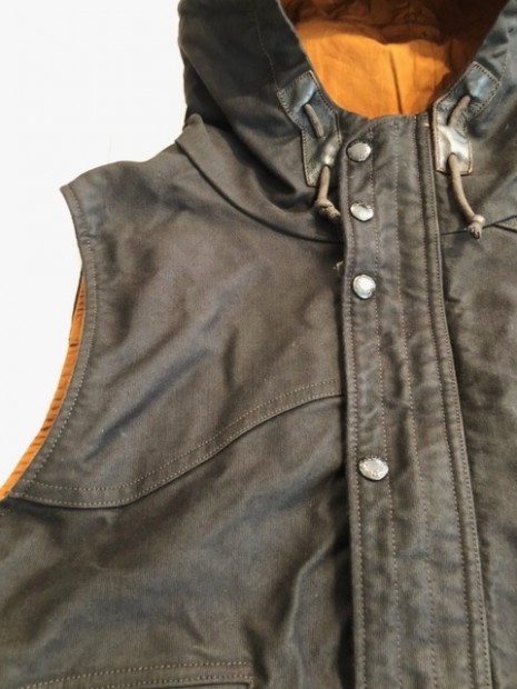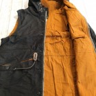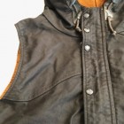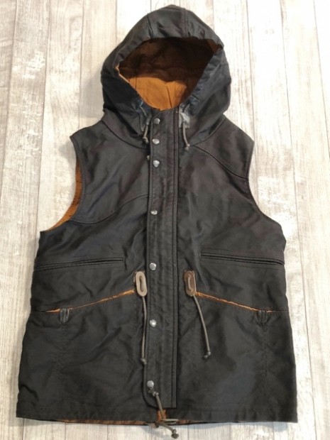 【コリンボ】 オリジナル スナイパーズ ベスト ジャングルクロス ジャケットのスリープを切り落とした独特な外観が目を引くフーディーベストを堅牢なジャングルクロスで仕立てました。ジャングルクロスとは1930年代の中頃に主に米海軍からの要請で研究開発が行われていたと言われる厚手のコットングログラン素材の一種で、その高密度でかさのある構造ゆえの高い防風性と保温性など開発当時急激に進歩した航空機搭乗員向けのアウターシェルとして、ギアのマテリアルの中核として生産されていました。その後ナイロンをはじめとする化学繊維の台頭でフライトギアとしての用途からは遠ざかりましたが、艦艇クルーが着用するデッキジャケットなどタフネスさを要求されるシーンにおいては依然、第一級のの高機能素材として君臨していました・・・。 製品ではゲームハンティングの中でもライフルを中心としたアクティブなスタイルに特化したスポーツハンターに向けたフォルムとディティールを盛り込みました。サックポケットと呼ばれるブレット用カーゴスペースには珍しいフラップレス仕様で、1930年代にはよく見られたレザーの補強がセンターに配された左右2室構造。フードはキャップなどの上から被った時にフィット感を高めるため側頭部にもコンプレッション機能を持たせています。 お手入れ方法 洗濯は手洗いおよび洗濯機によるクリーニングか可能です。手洗いの際の脱水時や洗濯機ご使用時には洗濯用ネットに入れて行ってください。ライニングにはコーティング素材を使用しているのでドライクリーニングを行うとコーティングが剥離する場合がありますのでご注意ください。軽く脱水を行った後はハンガーにかけて陰干ししてください。 表地 コットングログラン、裏地 コットンウェザー(パラフィンコート) アジャスター ロウ引きコットンコード×カウハイドロック