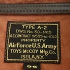 【トイズマッコイ】 タイプ A-2 ”V, ヒルツ” TOYS McCOYのフラッグシップモデルである本モデルは2017年の春夏コレクションにおいて2005年の発表以来、初のリニューアルを果たしました。主な変更点は左肩のデカールが”ARMY AIR FORCES”から”ARMY AIR CORPS”へ。コットンライニングの認識番号ステンシルを劇中と同様の仕様へ、と以上の通りです。岡本博自身によるデカールのハンドレタッチやヌメ革に型押しネームプレートなどのこだわりディティールは従来通りとなります。