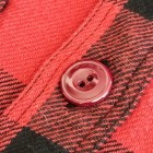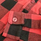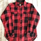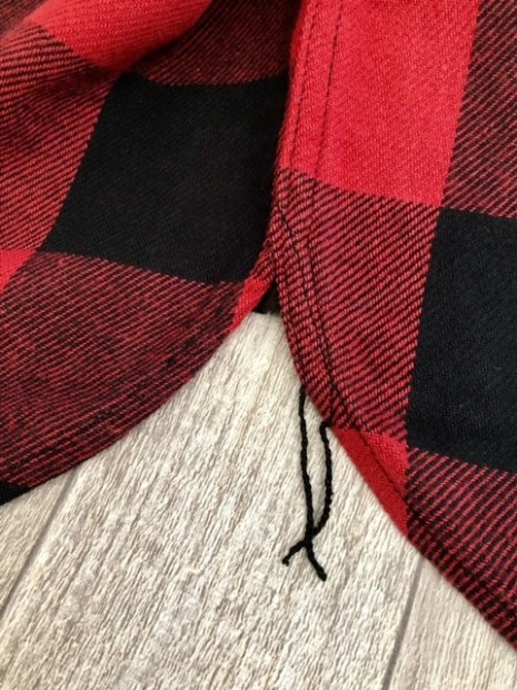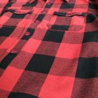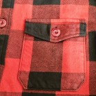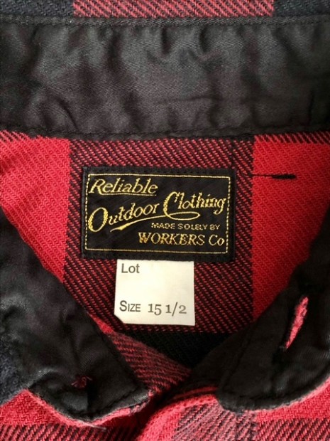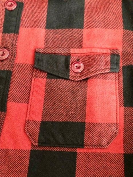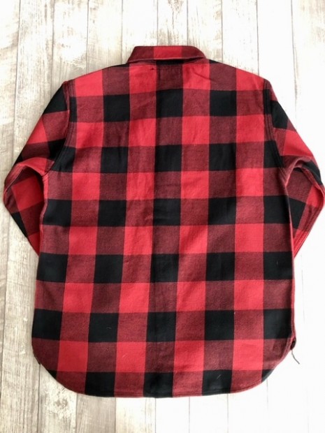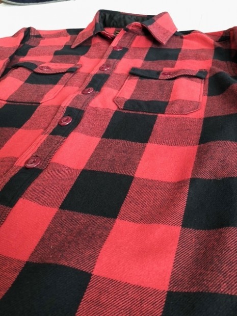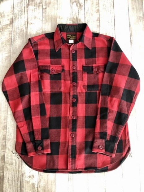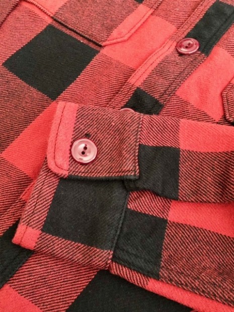 【ワーカーズ】 フランネル アウトドアーシャツ レッド バッファロー チェック 久しぶりにチェックのカジュアルシャツ。ワークシャツのようで、仕様が微妙に違うので「Outdoor Shirt」としました。 元ネタはウールリッチのビンテージ。元ネタはウール生地のところ、WORKERSは厚手のコットンネル。 「ネルシャツ仕様」にはせず、細部はウールシャツそのもの。 前立て裏・カフス裏・台襟裏に黒のコットンサテン生地。元はウールで肌が触る部分の感触を良くしたいとか、厚みが出すぎる部分を薄くしたい。そんな意味合いの仕様をそのまま残しました。 通常のシャツより大きめのボタン。アウターとして着ることを考えて開け閉めしやすく、アウター「らしさ」も出ます。背面はヨーク無しの一枚物、厚手生地でヨークをつけると肩先が厚みがありすぎる為。 一口に「シャツ」と言っても、生地の風合い・厚みや着用する用途を考え、細部の仕様が調整・工夫されています。 素材、8オンスほどのネル。レッド、ブラックはごくわずかな起毛。ブルー2色は起毛なし。 どちらの生地も織り糸は太く、着こむほどに毛羽が立ち、柔らかく風合いが良くなっていきます。 昔ビンテージショーで見た、バッファローチェックのウールシャツにUSNのカバーオールという人がとてもかっこよかった。その印象がずっと残っていて、あれをコットンでできたらなと思い形にしてみました。ただ、久しく作らなかったのは価格が高いから。生地幅が狭い×生地単価が高い×柄合わせで一着に必要なメーター多い×柄合わせ裁断でチャージアップと4重苦。だからチェックの厚手シャツは無地に比べて突出して値段が高いのです。 製品はOW済です。