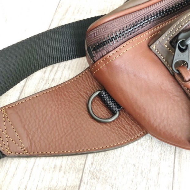 【コリンボ】 ワイルド ビル ハンターズ ファニー パック ウエストやボディーバッグとして細かなギアを携行するのに適したサイズで作成したファニーパック。本体にはイタリア産高級ステアハイド(牛革)をメインに使用し、メタルパーツには日光の反射の少ないマットブラックタイプをセレクトしています。また、ストラップ部の着脱には堅牢なプッシュリリースメタルバックルを使用し、素早い装着が可能となっており、アウトドアスポーツはもちろん幅広いシーンで活用できます。