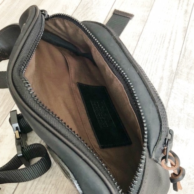 【コリンボ】 ワイルド ビル ハンターズ ファニー パック ウエストやボディーバッグとして細かなギアを携行するのに適したサイズで作成したファニーパック。本体にはイタリア産高級ステアハイド(牛革)をメインに使用し、メタルパーツには日光の反射の少ないマットブラックタイプをセレクトしています。また、ストラップ部の着脱には堅牢なプッシュリリースメタルバックルを使用し、素早い装着が可能となっており、アウトドアスポーツはもちろん幅広いシーンで活用できます。