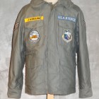 【TOYS McCOY】 MIL-J-4883 シングルブレステッドジャケット"グース エア ディフェンスセクター" 東西冷戦のさなか、北米大陸の北西部の防空を担う組織として設立され、カナダ、ニューファウンドランドのラブラドール州のグース空軍基地に司令部を置く“GOOSE AIR DIFENSE SECTOR”をモチーフに米空軍が独自に採用したフィールドジャケットをカスタマイズ。左胸にブルーのコットンテープによるU.S.AIR FORCEのマーク、GOOSE AIR DIFENSE SECTORのパッチ、右胸にはその隷下となる第924航空管制・警戒飛行隊のスコードロンパッチとネームテープ、両肩に軍曹の階級章、背中にはリフレクターテープを施した。