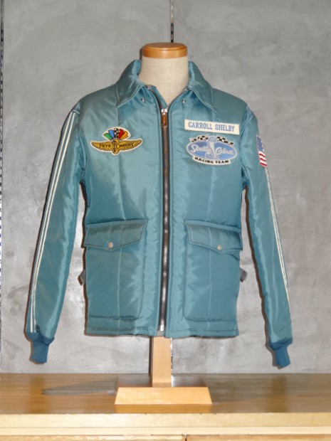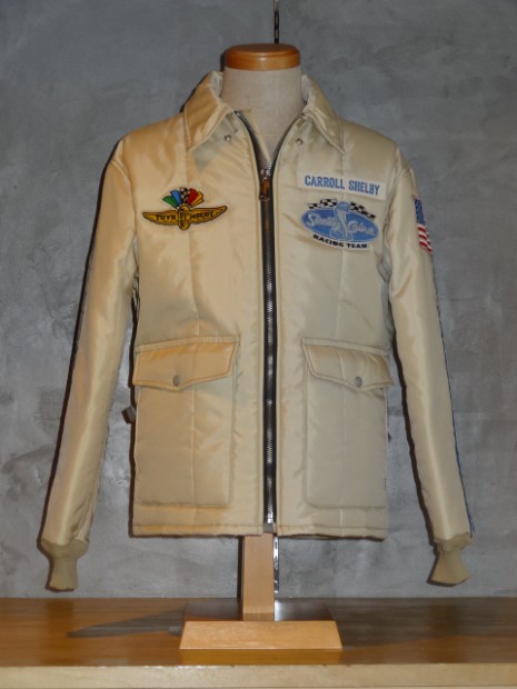 【TOYS McCOY】 モーターサイクルアクセサリー・カンパニーとして一時代を築き上げた“BECK”社がかつて手掛けていたスペクテイター(観戦用)ジャケットをベースジャケットに、シェルビーコブラのロゴでカスタムした1着。60〜'70年代のキルティングがもつ粗野だが保温性のあるキルティングを再現し、左胸と背中にコブラ、右胸にチェッカーフラッグを配置。先日、この名車の生みの親であるキャロル・シェルビーが死去したが、運命の悪戯か、このジャケットが彼へのトリビュートとなった。