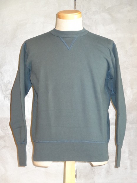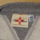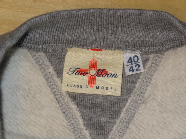【TWO MOON】 TWO MOONのスタートはこの一枚から始まった、原点にしてもっともスタンダードなSWEATです。インナーとして、アウターとして、他のアイテムとの着回しを考え生地を選択。シャツやジャケットにも相性のいい肉厚です。裏側は半起毛されています。縫製は接合部分のほとんどがフラットシーミングされ、両V部分は一枚、一枚、違う表情が出るようにハンドクラフトされています。フラットシーミングは生地を断ちながら縫製するという特殊な縫製方法で、4本の針を使って縫合とロック始末の役割を一縫製の中で行うので余分な縫い代が出ず、頑丈、まさに接合といった感のある縫製で、SWEATのようなアイテムには最適とされています。