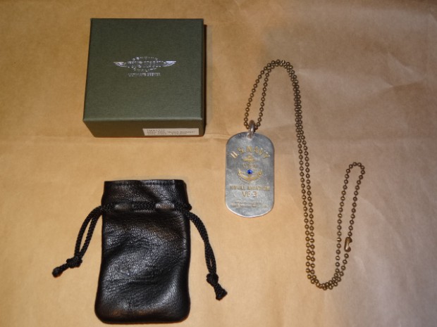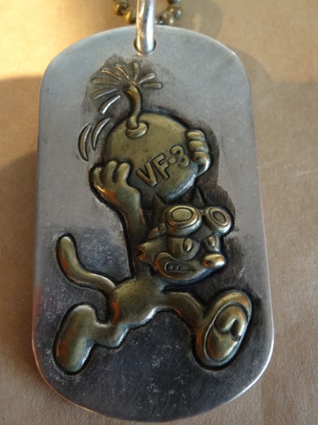 【TOYS McCOY】 米軍のドッグタグ(認識票)をモチーフにしたアクセサリーが初登場。真鍮プレートにファインシルバーメッキ(純銀)を施した贅沢な仕様に同素材のボールチェーンがセット。表は爆弾を抱えて走るFELIX THE CATのレリーフで、裏は“U.S.NAVY”のアンカーマークとVF-3のレタリングを彫り込み、ブルーのスワロフスキーを埋め込むなど非常に手間の掛った仕様となっている。