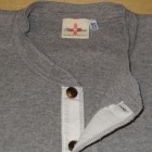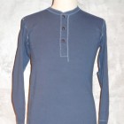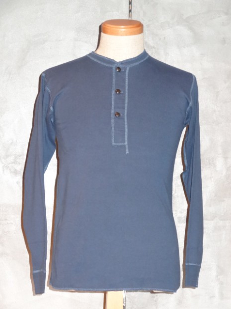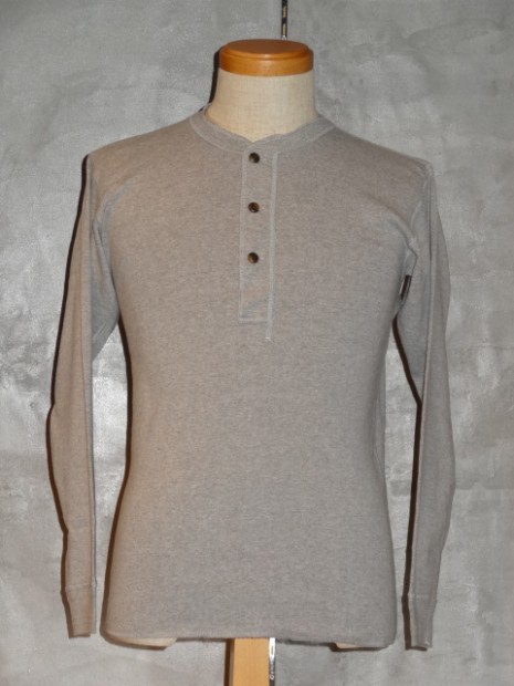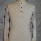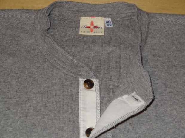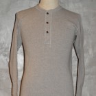 【TWO MOON】 1995年より製作しているTWO MOONのL/SリブTEEのリニューアル版。タイトすぎずフィットするのでシャツとの重ね着での使用や、程よいテンションで編まれたフライスを使用しているのでアンダーウェアとしても最適な着心地です。縫製は接合部分のほとんどが縫い目がゴロつかないフラットシーミングとなっており、袖付けのフラトシーミングの下糸には消臭糸が使用されています。袖口の伸び止め効果の入った編地の横リブ、選り付けのバインダー裏目使いや、襟ぐりのロック始末でステッチにアクセントを演出しています。また、左裾に入った赤のカンヌキ止めや、異素材使いの前立ての裏と下前立て、前立てを少し太くしたりボタンの大きさを変えクラシック感を出すなど、遊び心のある上質なL/S TEEに仕上がっています。