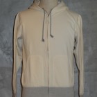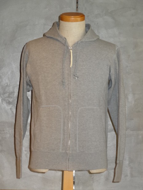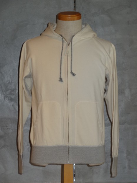 【TWO MOON】 年間を通して生産しているライトウェイトフルジップパーカ。【使いやすさ】を考えたTWO MOONのコンセプトの一つ、【着る道具】を体現したアイテムです。薄く軽いスウェットの裏毛を半起毛にすることでスウェットのフルジップパーカとして必要な最低限の肉厚感を出し、裏毛が絡み合うことで生地の斜行や大きな縮率を防止しています。ほとんどの接合部はフラットシーミングで縫製され、袖下ガセット、長リブなどTWO MOONらしいディティールのしっかりした作りです。年間を通じての着用を想定してシルエットはややタイトにまとめ、秋のライトなコーディネートの上にも合わせやすく、少し気温が下がるとネルシャツやダウンベストなどのインナーにも使えます。