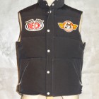 【TOYS McCOY】 多くの声に応え、久々のリリースとなったBECKのダウンベスト。その胸にチェッカ―フラッグとロゴを組み合わせたBECKの刺繍パッチとFELIX THE CATの刺繍パッチをプラス。モーターサイクルのライディングポジションを配慮し、腰が露出しないように後身頃に余裕を持たせたシルエットを採用した。レザージャケットの上に着用すれば保温力の強化に貢献してくれる。