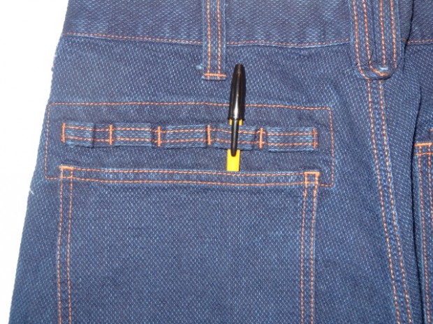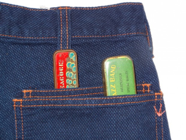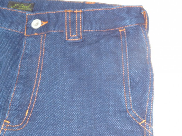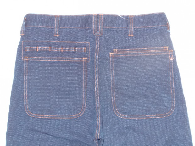 【DE-NA-LI】 バーズアイ(鳥目織)されたデニムパンツ。一見するとごくスタンダードなシルエットだが、随所にこだわった仕様が見て取れる。動きやすいように股下に授けられたマチ、バックポケットも右側は二重仕様になり、各ポケットに分けて小物を収納できる。左側はペン刺しとして使用も可能だが、各ループにカラビナやキーリングを取り付けられる仕様になっている。縫製も一見、ダブルステッチに見えるが、真中の糸をパンツと同色の糸に変えることにより目立たないものの、トリプルステッチで縫製され抜群の強度を誇る。ベルトループは70`Sの珍しい仕様。DE-NA-LIの『外に出ればそこはフィールドである』の理念の基、随所にこだわりが見て取れるパンツに仕上がっている。