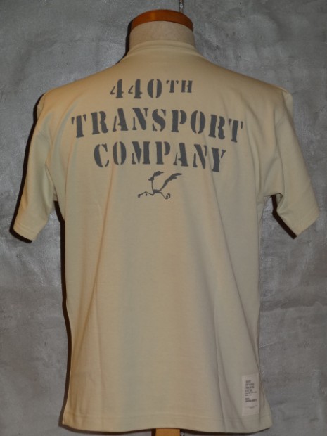 【TOYS McCOY】 文明から切り離された戦場の最前線では敵と対峙する戦闘部隊の活躍もさることながら、円滑な物資の補給が勝敗に大きく左右される。第440輸送中隊はその大事な任務をこなし、前線の兵士たちを支えた。彼らのスコードロンパッチには“ロードランナー”が描かれ超高速の水上物資補給を標榜している。このTeeシャツは迅速な任務を象徴するルーニーテューンズのキャラクター、ロードランナーと、フライングホイールと船の舵を象った部隊章が描かれている。