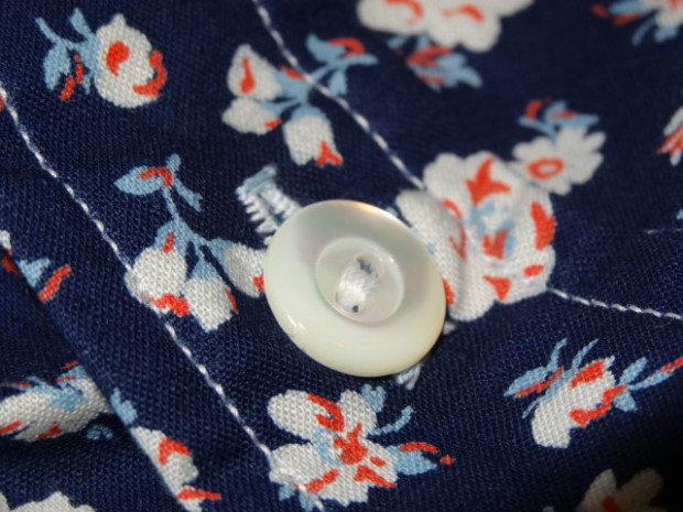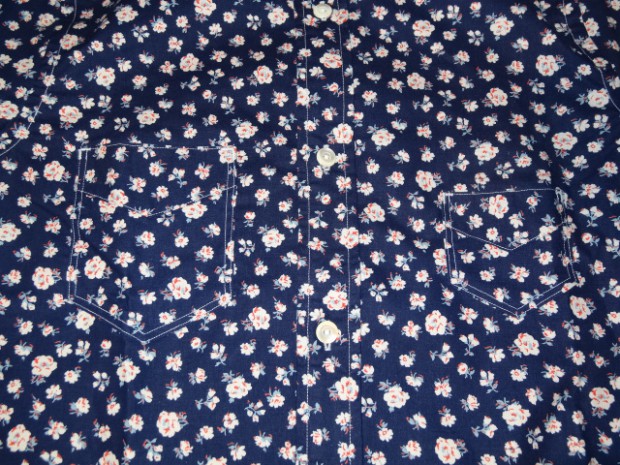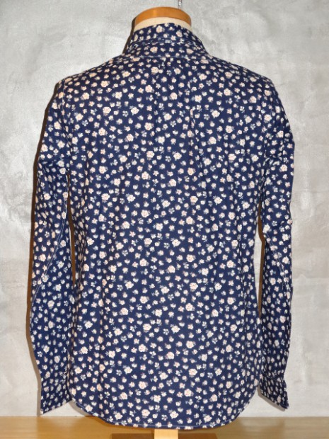 【WORKERS】 久しぶりに隠しボタンダウンの登場です。 今回はチンストラップをつけ、少しワークウェアに近い雰囲気を残しました。クラシックなワークウェアが、まだドレスウェアの名残を色濃く残していた時代の製品です。 ドレスウェアの名残は、バッグ・袖口のピンタックにも表れています。 Floralでは生地を遊んで、インディゴ染めのシーチングをまずは一度抜染。白場を作ってから、赤、薄いブルーとプリントを入れ、小花柄を描いています。 インディゴ染めのため、色落ち・色移りをします。その点、ご了承ください。 ノンウォッシュの製品をお送りします。