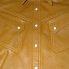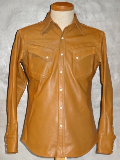 【TOYS McCOY】【BLISSWEAR CLOTHING 別注品】 60年代後半から70年代初期のヒップな時代を連想させるカウハイドのウエスタンシャツ。しなやかなカウハイドが用いられ、ライニングにはすべりの良いレーヨン生地が施されている。各サイズ限定一着づつのデリバリー。 70年代のレザーカルチャーでレザーのウエスタンシャツが人気を博したのは、先人たちが自然とともに営んできた自給自足の生活への郷愁からだったのかもしれない。