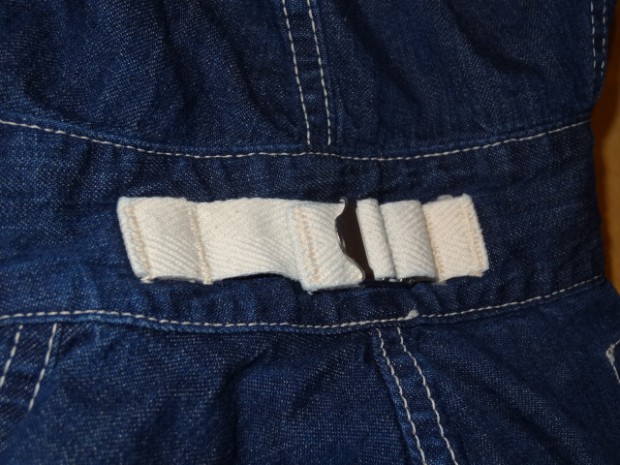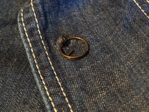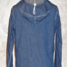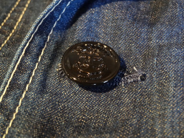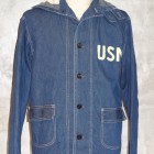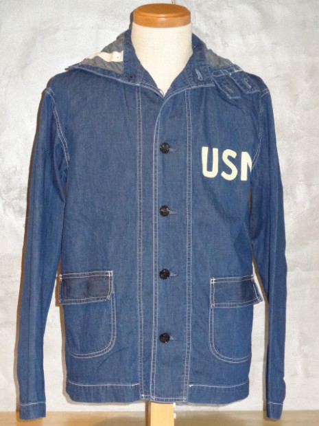 【TOYS McCOY】 第2次大戦時から朝鮮戦争に掛けて米海軍は多くの装備品を兵士に支給したが、そのどれもが独創的なデザインで珍品の宝庫でもある。このデニム製のカヴァーオールもそのひとつで非常に視野の狭いフードが付属しており、特に防水機能は施されていない。多くはプルオーヴァータイプであるが、今回モデルアップしたこのモデルはタウンユースとしても着用しやすいよう、フルボタンオープンとした。着用と洗濯を繰り返すことで徐々に褪色していくデニムの風合いと特殊なディテールを堪能したい。※左胸にU.S.N.のステンシル有