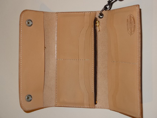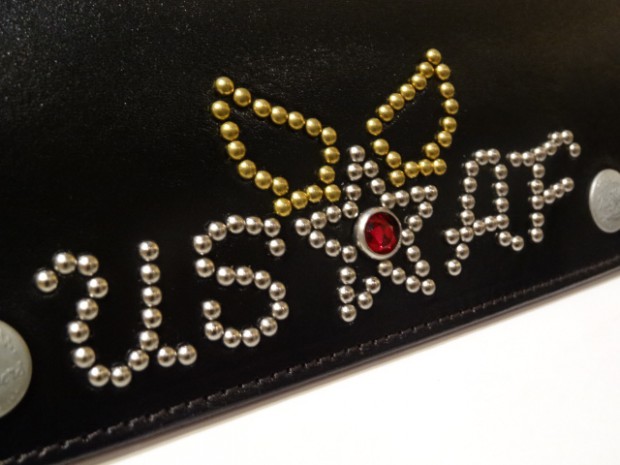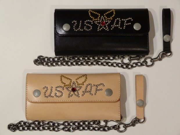 【TOYS McCOY】 トラッカータイプのシンプルなロングウォレットにスタッズでU.S.A.F.とウィング&スターをあしらった。敗戦後の日本に駐留した米軍兵士たちは基地周辺のベースタウンで営まれている職人の手仕事の細かさに魅せられ、休暇の折には小ロットからオーダーできる誂え物を買い求め、自分たちの所属する軍や部隊のマーキングをさまざまなアイテムに取り入れた。このウォレットはその当時、モーターサイクルで、日本を駆け巡った兵士たちの持ち物をモチーフにしている。