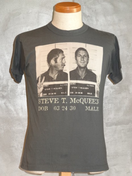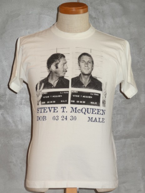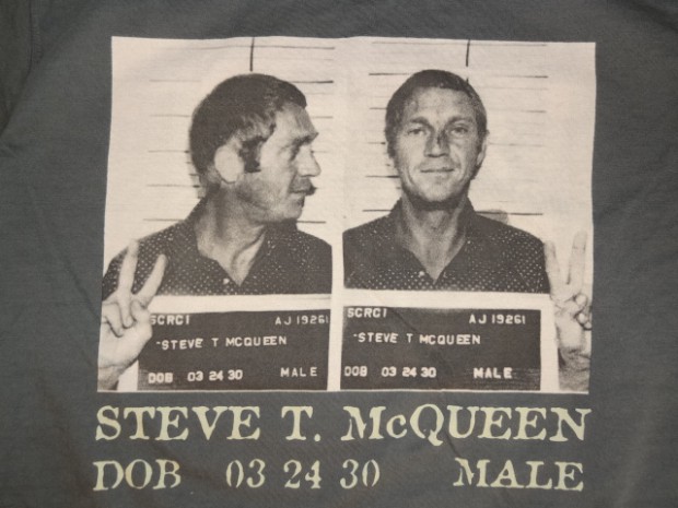 【TOYS McCOY】 マックィーンが酔った勢いでクルマをスピンさせ続ける通称“ドーナッツ”を公道で披露し、逮捕された時の「マグショット(犯罪者の証明写真)」をプリント。不敵な笑みを浮かべながらのピースサインは彼の死後に発覚した有名なエピソードのひとつである。「大脱走」で見せた、あのふてぶてしい態度はハリウッドの異端児と呼ばれるマックィーンの等身大の演技だった、ということが窺える。