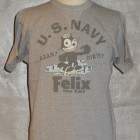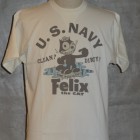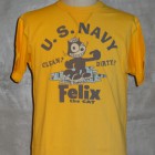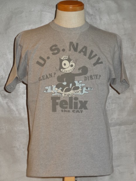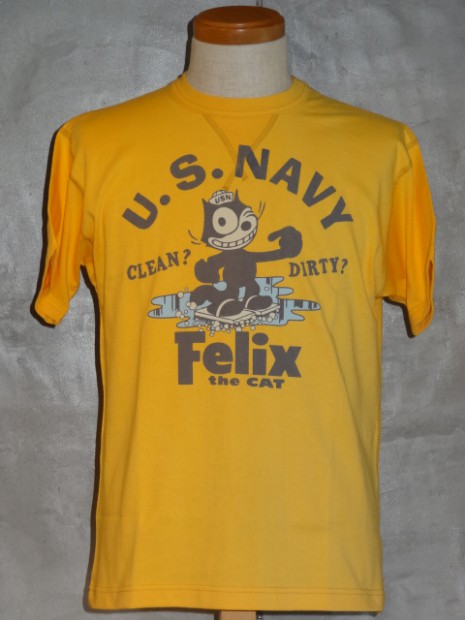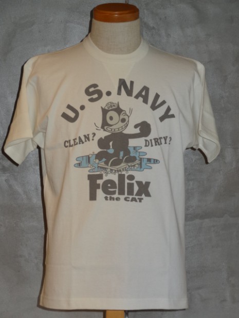 【TOYS McCOY】 航空母艦のデッキクルーは毎日が掃除の日々。航空機が分刻みで離発着するフライトデッキには少しの汚れが重大な事故につながることを彼らは先人の犠牲で学んでいるのだ。さてデッキ掃除に大忙しなFELIX 水兵はブラシ付きのサンダルで効率的に作業中。イタズラっぽくウィンクする姿は1920年代頃に初めて図案化された頃のタッチを再現し、新たに描き下ろしたものである。