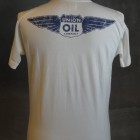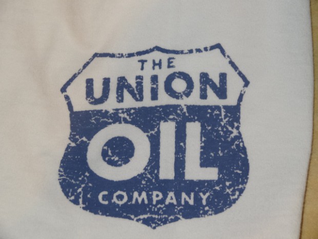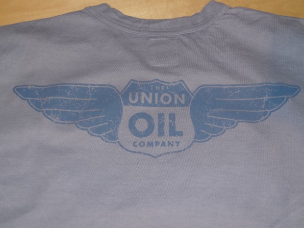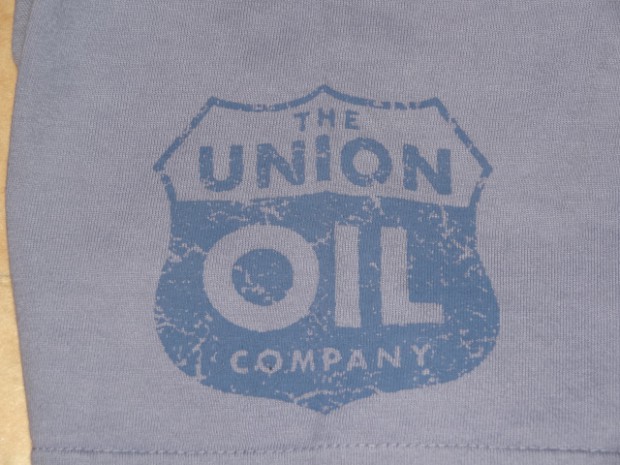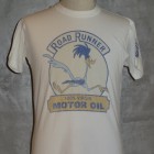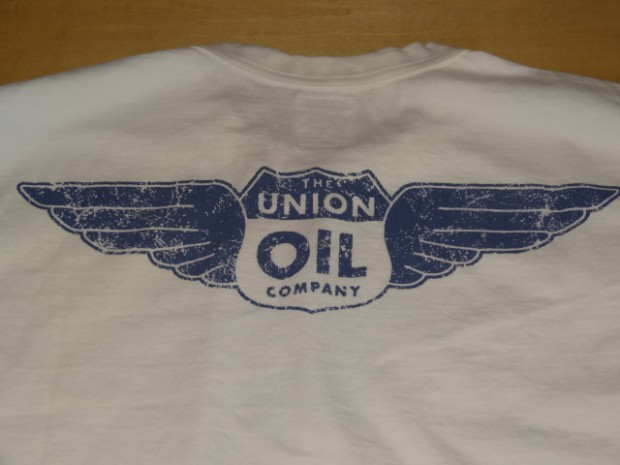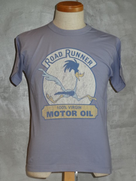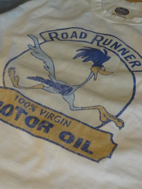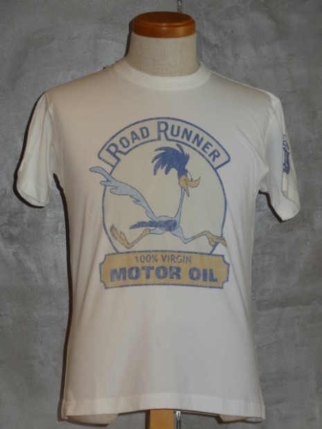 【TOYS McCOY】 ヘリンボーンのショートスリーヴワークシャツと同じくルーニーテューンズのキャラクター、ロードランナーをマスコットにしたオイルカンパニーのプリントを施したTeeシャツ。先を急ぐ旅人の急なオーダーにも対応できるスピーディなサーヴィスが自慢のカンパニーを表現するのに、超スピードで移動するロードランナーは絶好のキャラクターだ。