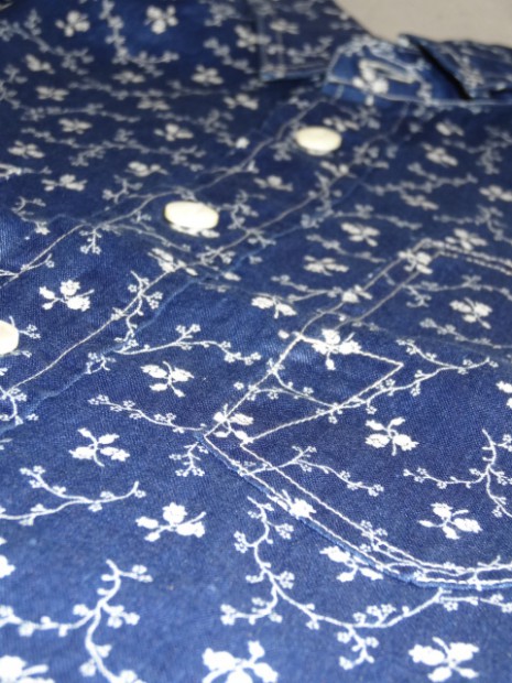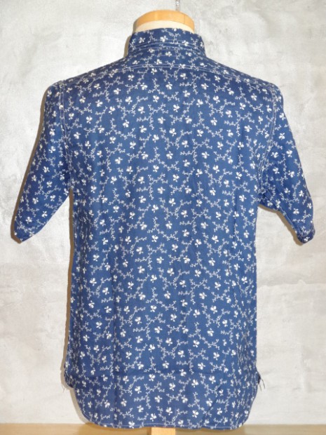 【WORKERS】 キャントバステムの製造メーカー、エロッサーハイネマンの頭文字からきたEH Shirt。ポケットのデザインはキャンとのカバーオールから来ています。 台襟にはチンストラップを付けず、こってりしたポケットデザインの分、他はシンプルに作っています。 シルエットはWORKERSでいつもワークシャツに使っている物をベースにしています。落ちるか落ちないかぎりぎりの肩幅、ウェストでぐるり4センチほど絞った身頃。 素材はリネン100%の生地をインディゴ染め、抜染したもの。素材がお高い、さらにインディゴ100%染め+抜染で生地値が異様に高く、製品価格も少しお高くなってしまいました。 リネン独特のぷりぷりした風合い、洗いこんでインディゴが落ちた後の風合いが楽しみな生地です。 ただ、色落ちはしやすいので、白物と着るのは避けてください。カバンも白い帆布などは色が移ります。また、洗濯の時も単独で洗ってください。 ワンウォッシュ済の製品をお届けします。