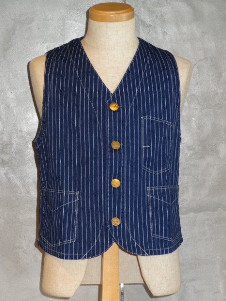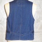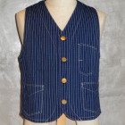 【WORKERS】 一重、比較的裾が一直線、巻き縫い仕上げのベスト。ワークウェア、カバーオール等に準じた作りであるのでワークベストと呼んでいます。 ポケットも、裏地が無いのですべて張り付けポケット。 バックシンチでサイズ感を調節できます。ジャケットの中に着る時はきっちり絞ってタイト目に、一枚で着る時はゆったりと。 素材が6オンスと薄手なので、インナーに着るにもあまりごわごわしません。 洗い済の製品をお送りします。