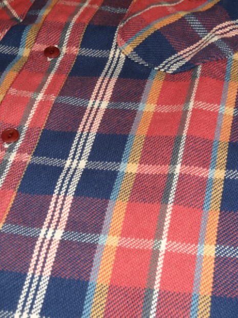 【UES】 UESのヘビーネルシャツは、厚みのある生地と、力織機で織ることで表現される風合いが大きな特徴です。 タテ糸とヨコ糸の打ち込みのバランスが良く、適度に生地が動くことで着心地が良くなります。生地の風合い を是非手にとって実感してください。直接染料を使用した先染めの生地は、着込むことで少しずつ褪色していき ます。微妙な色のトーンが楽しんでいただけます。