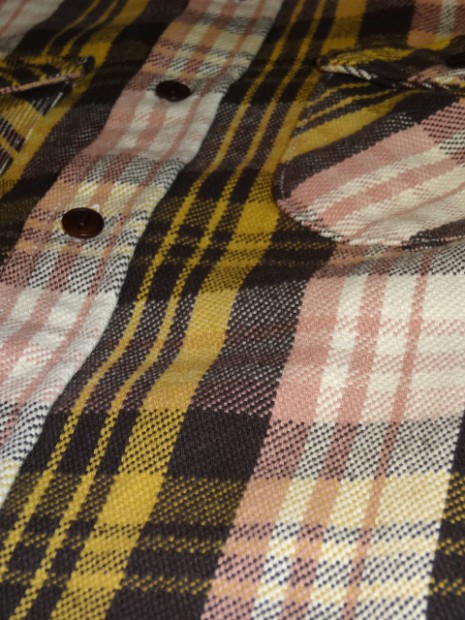 【UES】 UESのヘビーネルシャツは、厚みのある生地と、力織機で織ることで表現される風合いが大きな特徴です。 タテ糸とヨコ糸の打ち込みのバランスが良く、適度に生地が動くことで着心地が良くなります。生地の風合い を是非手にとって実感してください。直接染料を使用した先染めの生地は、着込むことで少しずつ褪色していき ます。微妙な色のトーンが楽しんでいただけます。