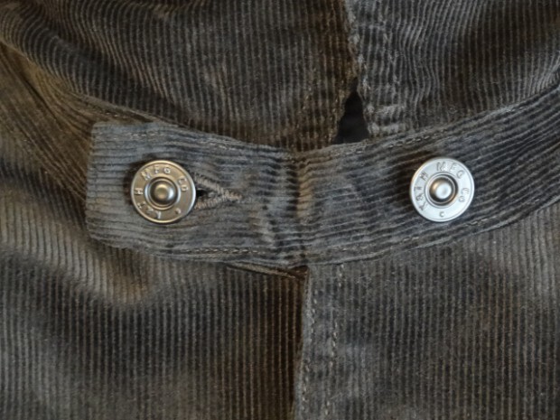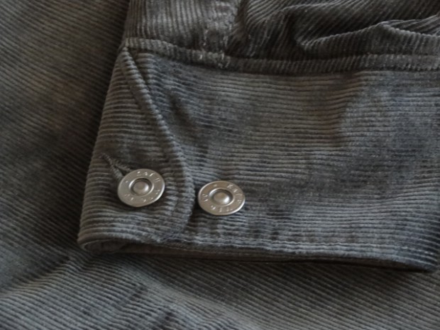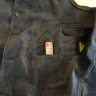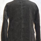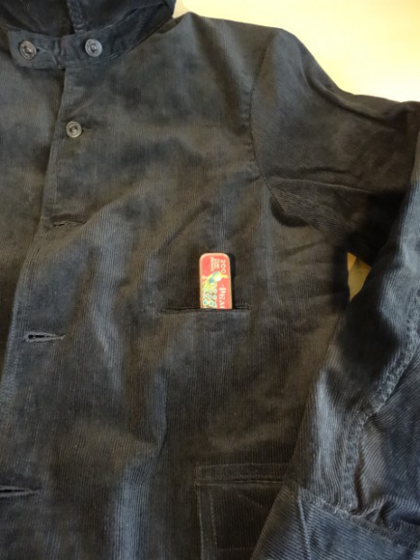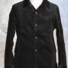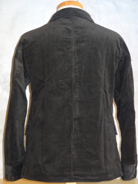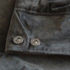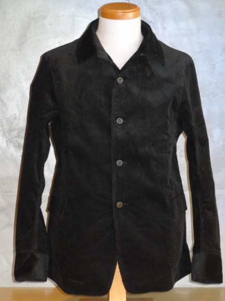 【WORKERS】 数年前、まだWorkersで製品を作り始める前。知人から、Kinsey Photographer the Locomotive Portraits という本を見せられ、その中の一人が着ている服を基にと依頼されて作ったジャケットです。 ジャケット自体は小さくしか写っていなかったので、細かな部分は想像して作りました。 その時作ったのはコーデュロイ。今回、そのオリジナル?に近いコーデュロイでもラインナップ。モールスキンよりさらにドレス的な生地の雰囲気と、粗野な形の組み合わせが特徴です。 いわゆる「カーコート」に近いデザイン。それに、チンストラップをつけあえてそれをしまえる様にボタンを配置しています。 身頃のシルエットはカバーオールのような楽さ、肘〜袖はタイト目に。素材をシックな物を選ぶ事で、着る場を選ばない一着に仕上げています。 そんな中でも、あえて打ちこみ式のボタンを使う事で、ワークウェアらしさを残しています。 袖裏を滑りの良いベンベルクなので、袖は細くとも通しやすくなっています。 お送りする製品は未洗いです。