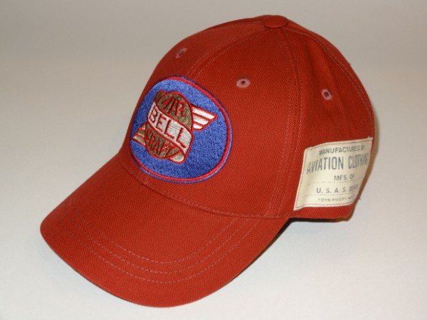 【TOYS McCOY】 ヘインボーンツイルを用い、バックル式のレザー製アジャスターベルトを装備したクラシカルなボールキャップをベースに、マックバスターズ・クラブ仕様にカスタム。音速突破のテスト機で有名なベル・エアクラフト社のロゴとマックバスターズ・クラブのレタリングが直に刺繍されています。クラウンに添付したラベルは陸軍航空部門の生産品を意味しています。