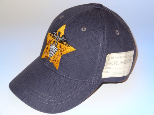 【TOYS McCOY】 ヒリンボーンツイルやバックル式のレザー製アジャスターベルトを装備した、クラシカルなベースボールキャップをベースに、クラウン正面に白頭鷲とスターズ&ストライプのシールド、アンカーマークをモチーフとしたU.S. NAVYのシンボルを直刺繍。クラウンの背面にはリフレクション効果のあるU.S. NAVYのプリントがあしらわれています。