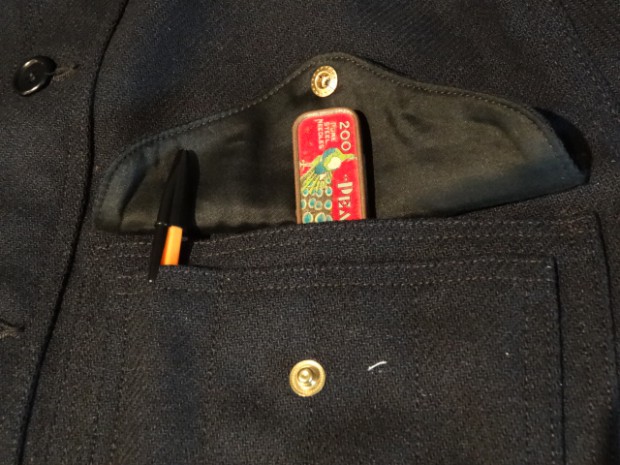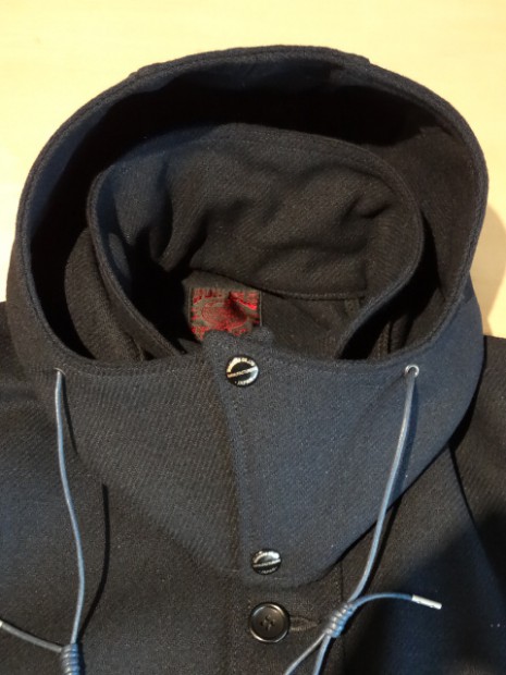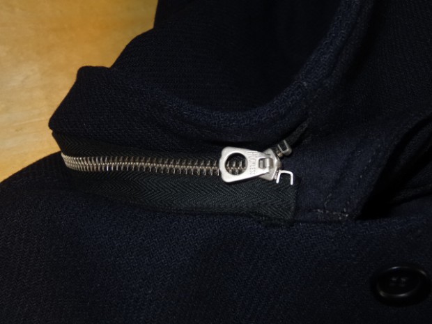 【WORKERS】 ビンテージのクルーザージャケットを元に作られた一着。 腰ポケットにサイドから手を入れられるポケットを追加。シルエットは、オリジナルの持つ雰囲気は残しながらも、現代の感覚でもルーズに感じない適度なフィット感を目指しました。 素材はウール100%。英国羊毛を50%ブレンドし、強く撚る(よる)事により、独特のガサガサした手触り。10番糸を2本より、5番相当として、ヤブレ織りと呼ばれる、斜めの織り目が見えるのだけど若干崩れたように見えるのが特徴。 表面を強く縮絨はしていないので、織り目は見える仕上がり。Khakiは逆に、織り目が見えなくなるように強い縮絨をかけているので、その差をアップ写真でご確認ください。 納品する製品は未洗いです。