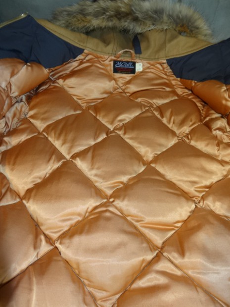 【TOYS McCOY】 第二次世界大戦前に限定採用さて、後のB-9、N-3Bへと進化したヘヴィゾーン用飛行服の布石となった民間衣料のダウンパーカ。袖口から肘にかけて補強布を当て、コヨーテファー付きのフードを装備したヘヴィーデューティーな作りは後のアウトドアウェアに多大な影響を与えた。今シーズンはボディがネイビーブルーのバージョンをモデルアップした。