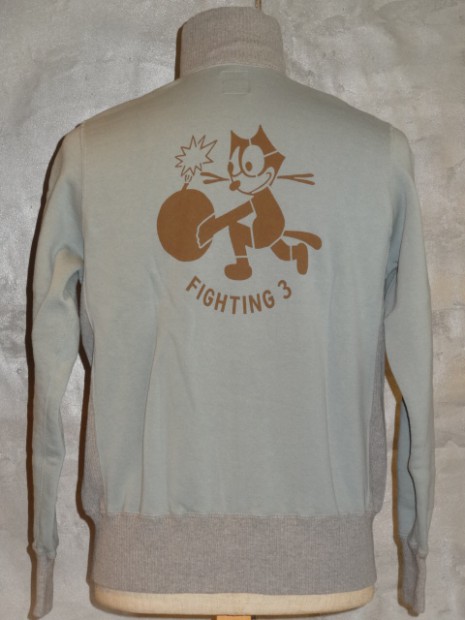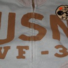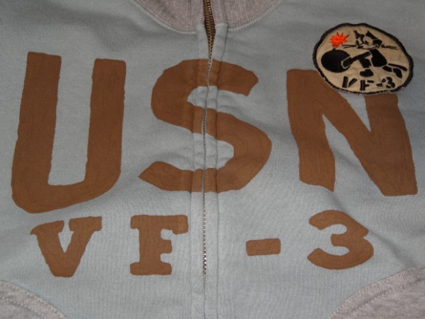【TOYS McCOY】 アウタートして、またレイヤードアイテムとして重宝するフルジップスウェット。デザインは米海軍の傑作品、ショート丈のデッキジャケットを模しており海軍飛行部隊、VF-3のデコレーションを施してあります。D型のパッチポケットやスタンドカラーの襟を踏襲し、脇の下にリブパネルを設けたことで運動性にも優れています。
