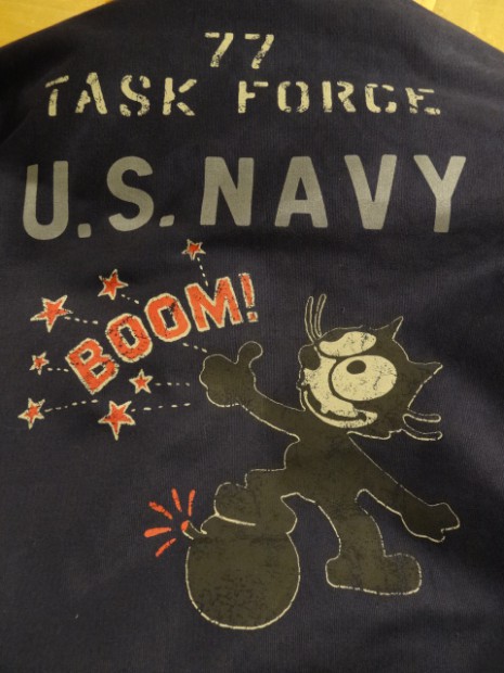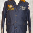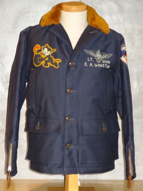 【TOYS McCOY】 1947〜1952年の間に米海軍で採用された飛行服、AL-1に更なる機能を追加したオリジナルモデル。実物が持つ複雑なカッティングやディティールを再現しながら保温性に貢献するムートンファーやネイビーブルーのボディなど、あたかも当時の民間衣料会社がモディファイしたようなデザインに仕上げられています。このカスタムモデルは海軍の飛行部隊の中でも古参のVF-31が朝鮮戦争に従事していた時代、第77任務部隊所属のデコレーションを施してあります。