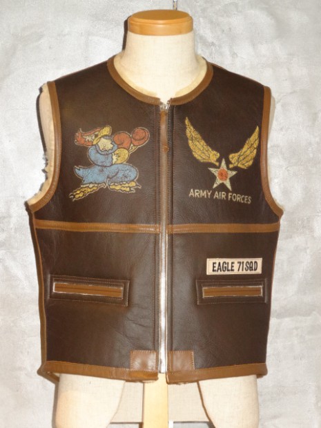 【TOYS McCOY】 第二次世界大戦で急速に発展した航空機の性能は飛行服の在りかたにも変化をあたえました。作戦地域や高度の多様化に伴い、A-2ではカバーできない領域で重宝されたのがC-3ベストです。補助的な装備の為か、デザインにいくつかのバリエーションがあり、今回初復刻となるこのモデルは当時のコントラクターのひとつ、ラフウェア社のもので見頃に玉縁仕様のポケットを装備、英国に義勇兵として参加した“イーグルスコードロン”のデコレーションでカスタムされています。