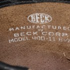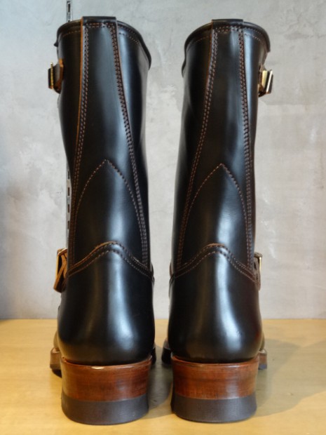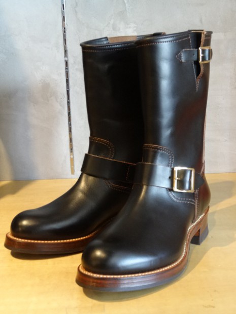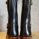 【TOYS McCOY】 40~50年代のBECKエンジニアブーツのフルレングスモデルを久々にラインナップ。ガラスフィニッシュレザーを用いた今季は、クラシカルなナローシルエットの実現のためラストを刷新。グッドイヤーウェルト製法やくぎ打ち補強、中空リベット留めのスチールシャンク、2ピース復刻のキャッツッポゥソールなど、見えない部分もこだわりぬいた一足に仕上げられています。