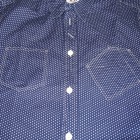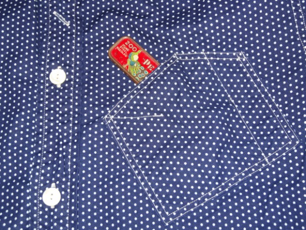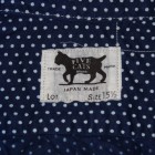 【WORKERS】 毎度おなじみ、WORKERS別注の抜染生地。インディゴに染めた生地に抜染で柄を描いています。 今回、ポケットのデザインを西海岸のワークウェアブランド、Black Bearのそれを参考に。それに伴い、ネームも新たに作成。Black Bearは熊が歩いているので、WORKERSは猫で。 今回、貝ボタンも新たに作成。厚みがあり、わずかに大きめのボタン。ビンテージでも大きかったり、厚かったり、ちょっと普通じゃないな、というサイズのボタンがあります。そういうものは、当時はごく適当な規格で作られていたため。現代では、既成ボタンの規格はかなり決まり切ってしまっています。そこで、14ミリ、厚めで別注しました。 ワンウォッシュ済の製品をお届けします。