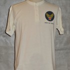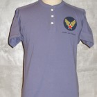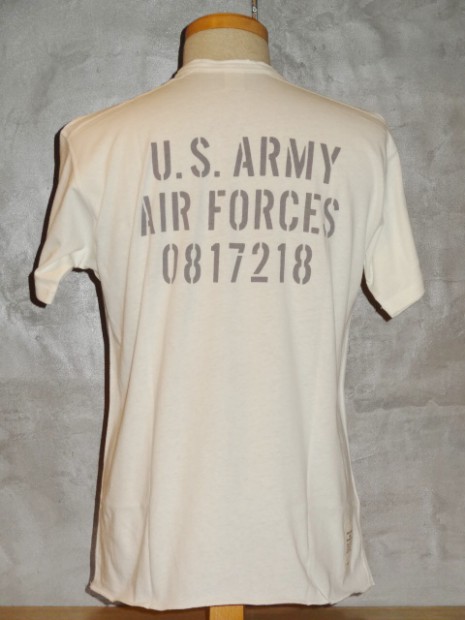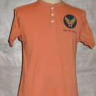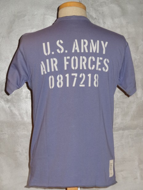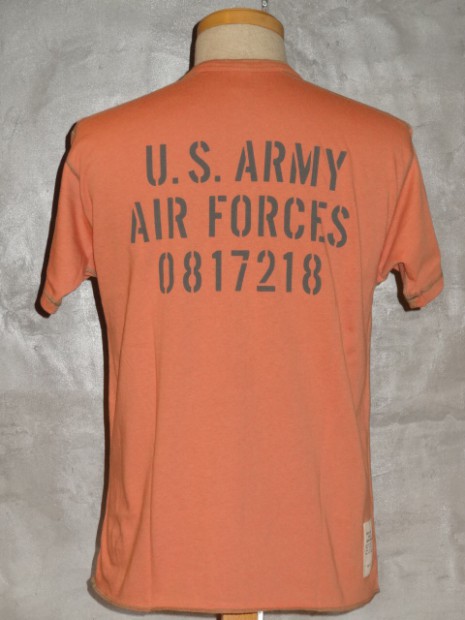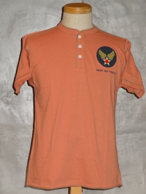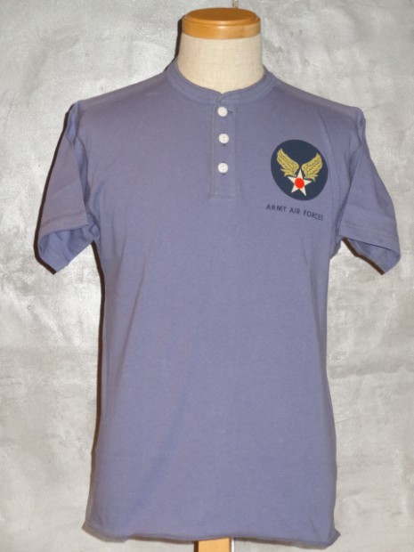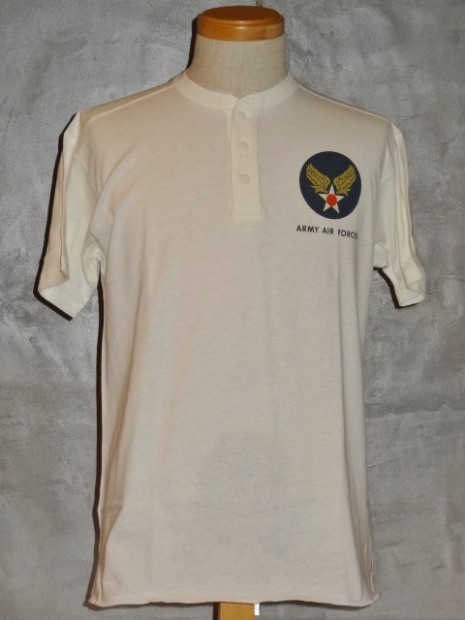 【TOYS McCOY】 英国で生まれ、移民と共に海を渡ったのちに、アメリカを象徴する服のひとつとなったヘンリーネックTEEシャツ。かつてのそれを彷彿させる堅牢な生地と縫製を再現したオリジナルに米陸軍航空隊のインシグニアとステンシルをプリントした一枚。フロントのアクセントがワンポイントゆえ、一枚で、あるいはインナーとしても使えます。背中の“0817218”は解る人にはピンとくる、V,HILTS大尉の認識番号です。