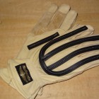 【TOYS McCOY】 往年のワークスレーサー達が1960〜1970年代のレースシーンで着用していたグローブの中でも人気が高いのが、ラバーのパイピングが手の甲にセットされたスプリンググローブと呼ばれるものです。当時のグローブは日本で製造されたもので、今作も当時、生産を手掛けていた熟練の職人によるもの。つまり、復刻ではなく本物そのもののグローブです。