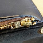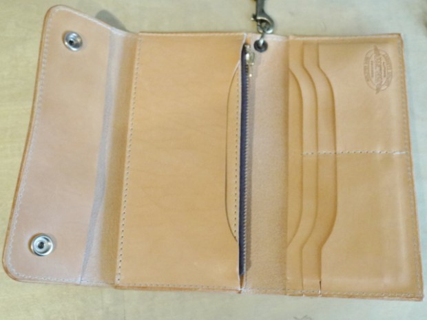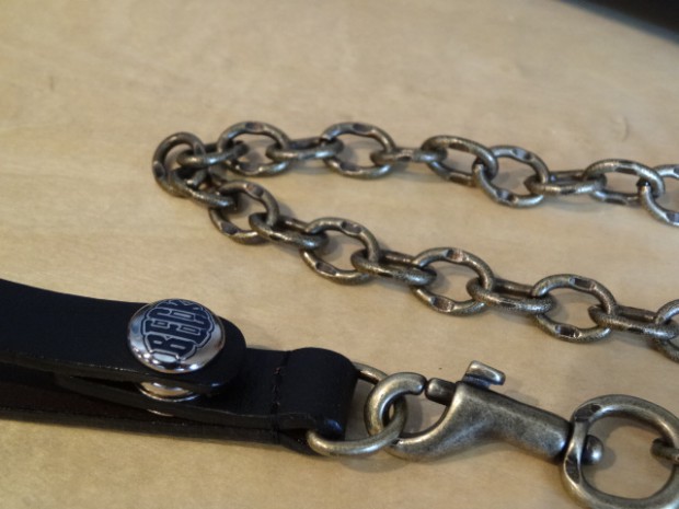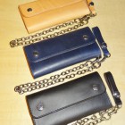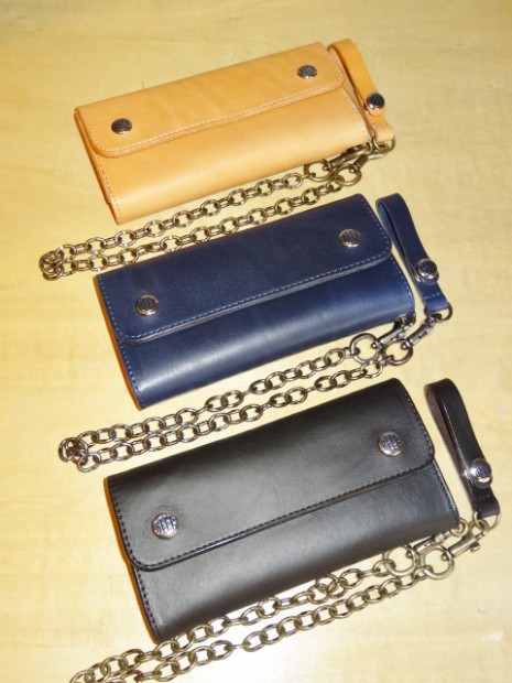 【TOYS McCOY】 バイカーの必需品であるチェーンウォレット。ブラックはイタリアで鞣されたダークブラウンのレザーに、国内にてブラックの染料と顔料で染色。イタリア革の良さをスポイルせずに質感をアップさせました。一方のナチュラルとネイビーはフルベジタブルタンニン鞣しで、銀面の表情を活かしたアニリン染料で染色。さらにオイルを多く含ませることで、しなやかさとメンテナンス性に訴求させました。レザーのスペシャリストであるトイズマッコイならではの、特別レシピを堪能してください。