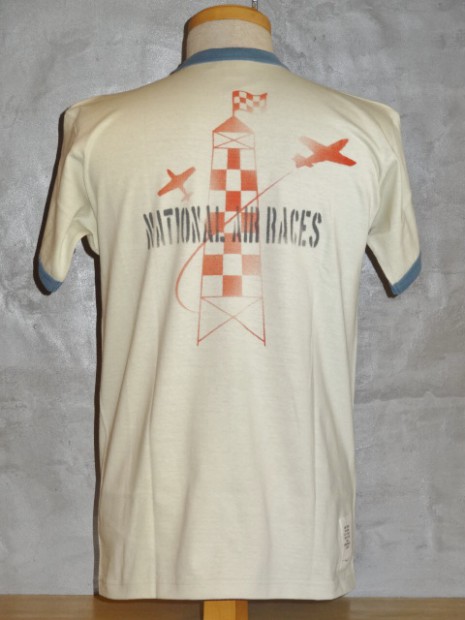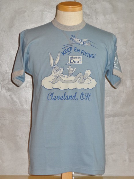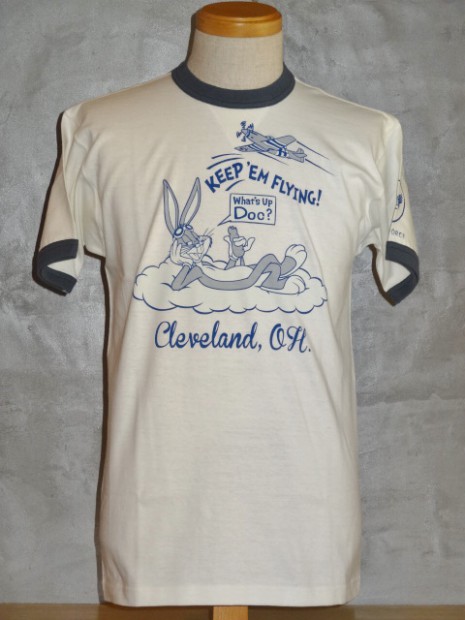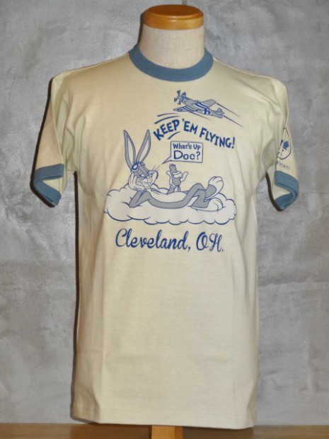 【TOYS McCOY】 60年代から続くエアレース。その中でもっとも見ごたえがあるのが、P-51マスタングをはじめとする、大戦機を改良したレース機が激しくデッドヒートを繰り広げるアンリミテッドクラスです。このTシャツはオハイオ州クリーブランドのレースがモチーフで、パイロンをパスするシーンをバッグスバニーとともに描かれています。