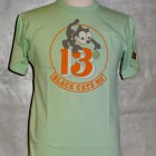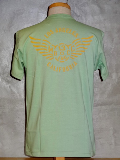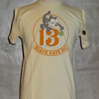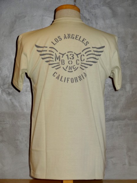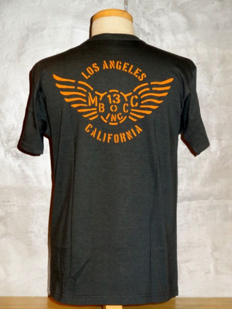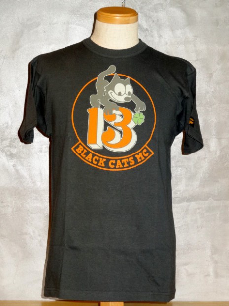 【TOYS McCOY】 幸運のお守りとされる四葉のクローバーと、不屈の魂を持ち米海軍の守護でもあるFELIX THE CAT。かたやキリストが処刑された不吉な日であるが、災い転じて福となすという意味に置き換え、ラッキーナンバーとするバイカーも多い13を組み合わせた、架空のモーターサイクル・クラブ。これだけのラッキーチャームが凝縮されているTシャツを着ていれば、長距離ライディングも安心ではないでしょうか?