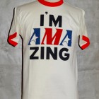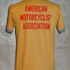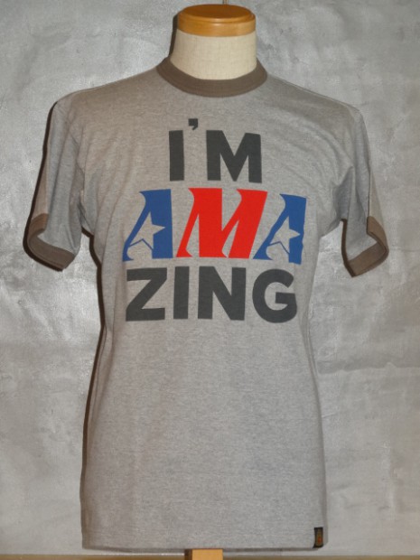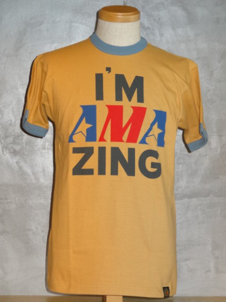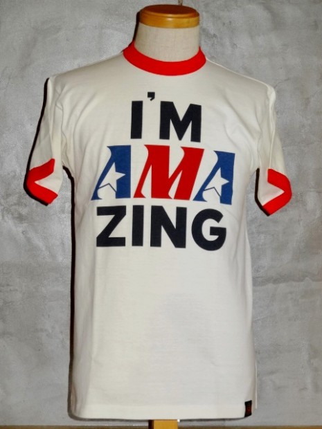 【TOYS McCOY】 AMAのロゴに掛けて、続けて読めば“AMAZING (アメイジング)=驚くほど見事”という意味になる、ウィットに富んだグラフィック。全米で開催されるモーターサイクルレースのシーンがエキサイティングだった70年代の色彩美を同じく70年代の雰囲気にピッタリなリンガーTEEと組み合わせました。まさにモーターサイクルホリックに捧げる1枚です。