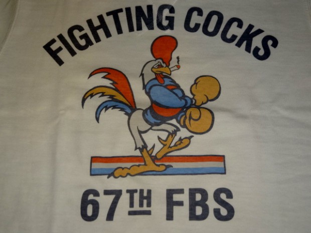 【TOYS McCOY】 1941年に発足されて以来、WW2、朝鮮戦争、ヴェトナム戦争を戦い抜いた第67戦闘爆撃航空隊“ファイティングコックス”。常に戦闘意欲を失わない猛者の集団は現在も沖縄の嘉手納基地に配属されています。朝鮮戦争時には、ジェットの時代にも関わらずレシプロ戦闘機、P-51で100回のミッションをこなしました。馬蹄型の図柄はその偉業に対して贈られた盾を意味しています。