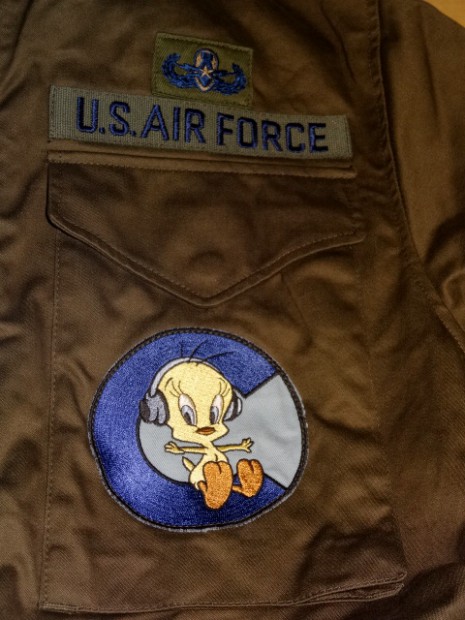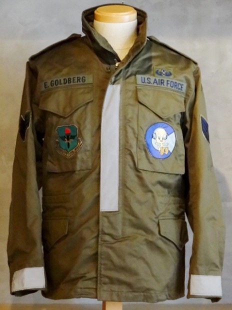 【TOYS McCOY】 1967年から70年代初頭まで採用されたアルミファスナー付のM-65を、生地やパーツなど、全てにおいて実物を基に再現したTOYS McCOYの復刻モデルをカスタム。パッチデコレーションはODを基調としたサブデュード(低認識)をベースに、第85飛行訓練部隊と、その使用機である訓練機T-37“トゥイート・バード”のフライト章、スタッフサージェント(二等軍曹)章、マスターEOD(爆発物処理技能)章でデコレートしています。また、滑走路での安全を確保すべくフロントフラップやバックパネル、カフスにリフレクションテープが装備されています。