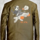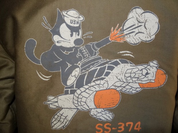 【TOYS McCOY】 WW2当時、太平洋の哨戒任務に従事した、米海軍のパラオ級潜水艦SS-374“ロガーヘッド”。その搭乗員のユニフォームにインスパイアされ、初期型のディティールを再現したN-1をカスタム。 海軍ならではの刺繍パッチやレザーの箔押しネームプレートに加え、ロガーヘッドに跨るフェリックス・ザ・キャットがバックにハンドペイントタッチでプリントされています。