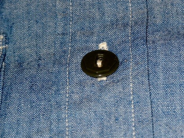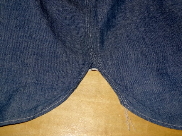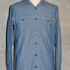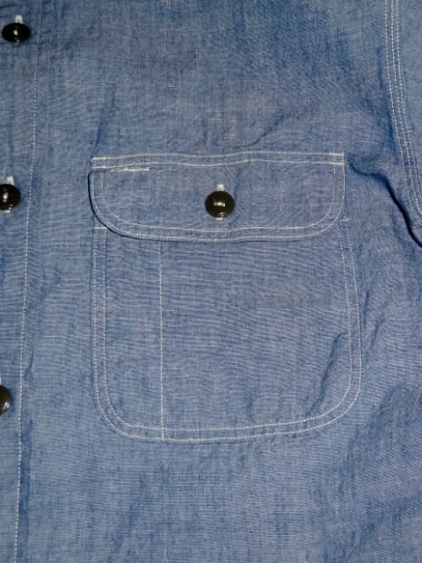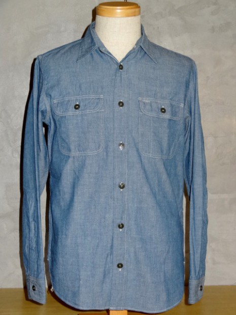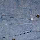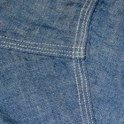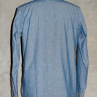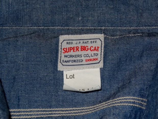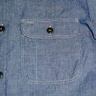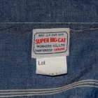 【WORKERS】 SUPER BIG MACのワークシャツを元に作りました。ネームはパロディでBIG CAT。 作りは2枚物の袖、場所によりトリプル・ダブル・針幅を使い分けた巻き縫い。 ぱっと見ると普通ですが、設備がないと作れない。作れそうでそう簡単には作れないワークシャツです。 素材はWORKERS定番の色糸をインディゴで染めたシャンブレー。洗いこむことで 美しい色に色落ちする生地です。 製品はOW済みです。