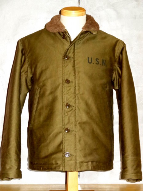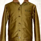 【TOYS McCOY】 ジャングルクロスと呼ばれる、堅牢なコットングログランをアウターシェルに、アルパカウールをライニングに装備した海軍、および海兵隊に支給された作業用ジャケット、N-1の初期型をリアルに復刻。 ネイビーブルーの最初期型から変更された、最初のODカラーで、そのディティールは豪華に袖口まで張られたアルパカライニングや、同システムのパンツを連結するベルトループが取り付けられています。