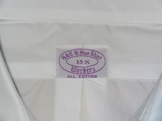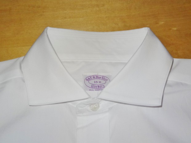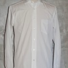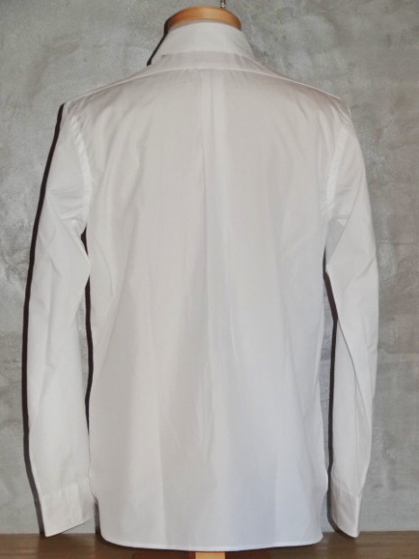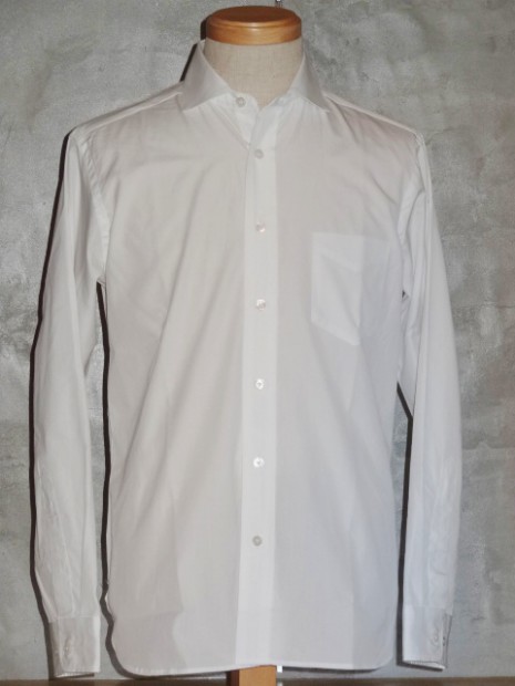 【WORKERS】 ワイドスプレッドのドレスシャツ。「ドレスシャツ」と言ってもWORKERSが作るからには芯は水溶性、洗うと接着が無くなりフラシ芯に。縫製も綿糸。現行ドレスシャツメーカーのそれと違いごく柔らかく作っています。イメージは古着で見たBrooksやHathaway、Arrowなどがデッドストックであれば・・・といった物。 シルエットは今期のBDで言うとModifiedに相当する、現代的なフィット感、肘巾は細め。 さらにWORKERSでは今期ついにニットタイを作りました。ネクタイに合わせるシャツと言えばBDと並んでワイドスプレッド。 ホワイトのブロードシャツにブラックやネイビーのニットタイ。下はジーンズでもチノでも。 ホワイトは100番双糸のブロードクロス。 ボタンはハサウェイと同じく三つ穴ボタン、脇にはハサウェイのHのようにWを入れています。古着好き、トラッド好き、シャツ好きの方に。 未洗いの製品をお送りします。