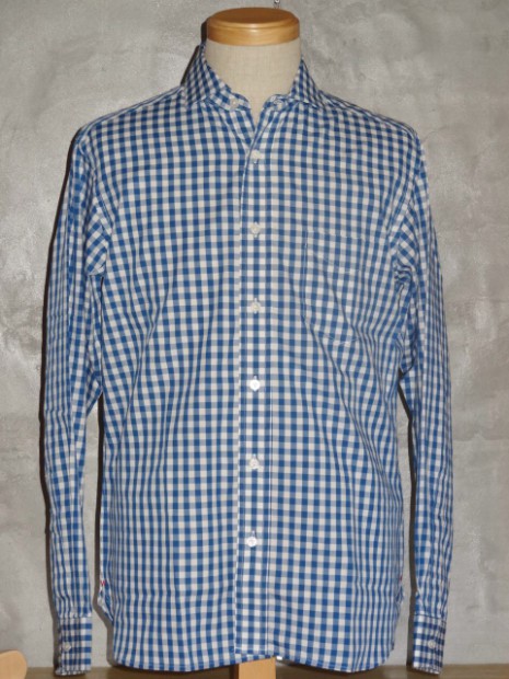 【WORKERS】 ワイドスプレッドのドレスシャツ。「ドレスシャツ」と言ってもWORKERSが作るからには芯は水溶性、洗うと接着が無くなりフラシ芯に。縫製も綿糸。現行ドレスシャツメーカーのそれと違いごく柔らかく作っています。イメージは古着で見たBrooksやHathaway、Arrowなどがデッドストックであれば・・・といった物。 シルエットは今期のBDで言うとModifiedに相当する、現代的なフィット感、肘巾は細め。 さらにWORKERSでは今期ついにニットタイを作りました。ネクタイに合わせるシャツと言えばBDと並んでワイドスプレッド。 ホワイトのブロードシャツにブラックやネイビーのニットタイ。下はジーンズでもチノでも。 ブルーのギンガムにネイビーのタイ、逆にオレンジ系のタイを合わせても春・夏らしく。 ボタンはハサウェイと同じく三つ穴ボタン、脇にはハサウェイのHのようにWを入れています。古着好き、トラッド好き、シャツ好きの方に。 未洗いの製品をお送りします。