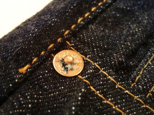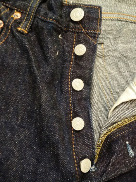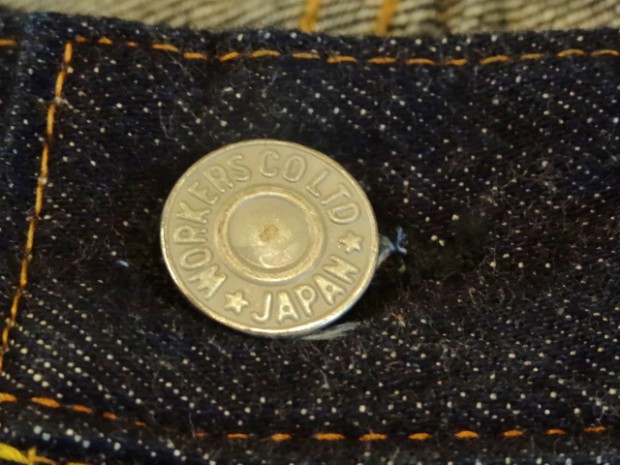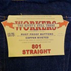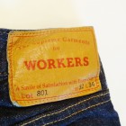 【WORKERS】 米国のアプランド綿を使ったデニム。アプランド綿は極めてベーシックな綿。繊維長で約27.8-28.6ミリ程度。同じ米綿でもスーピマ綿が36.2ミリ程度の超長綿と比較すればその長さの違いは明らかです。綿も品種改良が進み、一般的に50年前の綿と比べても数ミリ程度、繊維相場の基準繊維長も長くなっています。一方で、農作物はいくら品種改良をしようとも品質はその環境に大きく左右されるとも言われます。その為、今回はベーシック中のベーシックを極める為、米国アプランド綿を選びました。これを日本に輸入し、ビンテージジーンズに見られるムラ糸の形状をスキャンし糸形状を決めます。これもあまり強すぎないムラにコントロールしています。完成した糸をロープ染色。下染め・後染め無しのピュアインディゴ染色。当然、糸を染めるには「何番」とか、その色番号やスペックがあるのですが、やはり綿自体によっても微妙に仕上がりの色が違います。今回、比較的赤みが少なく青みが強く出ているのが色の特徴。さらに、織布はミミ付の力織機。ローテンションで織ることで、ふっくらとした風合いになり、糸、さらには綿本来が持つキャラクターを消さないようにしています。完成した生地は防縮加工や毛羽を取り去る毛焼きは行わないキバタデニム。洗うと縮みねじれるのが特徴。ただ、出荷の前にはワンウォッシュ・乾燥機にかけてできる限り縮めてから送り出します。 パターンはストレートとスリムテーパードの二型。裾から10センチ程度は裾幅を同寸にしているので、レングス30インチ程度までは裾上げしても裾幅が変わりません。縫製はすべて綿糸。脇の割、左右の身頃を合わせる通称「小股」、ヨーク、帯付けは太番手の糸を使っています。綿糸で強度を出すための仕様ですが、これが結果としてセルビッジのデコボコとしたアタリ、ヨークの強いパッカリングを生んでくれています。今回、0から生地を作りジーンズを作るため心がけたのが「ベーシックであること」。綿はよりクラシックな雰囲気を醸し出すため、ペルーやインドなど、米綿以外を混ぜる方法もあります。インディゴ染めにしても下染めでピュアインディゴとは違う味わいを作り出す方法もあるのですがそれらを行わず、米綿・ピュアインディゴにこだわりました。結果、出来上がった色味は青が強く私のイメージ通りになっています。
