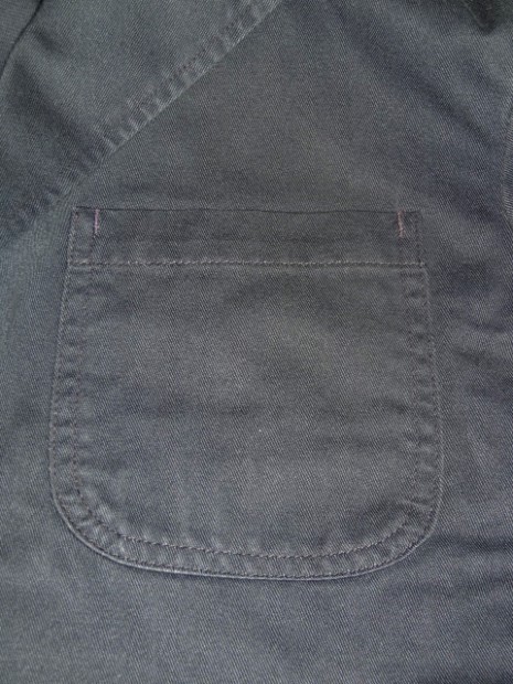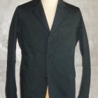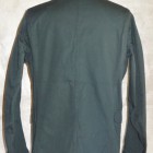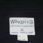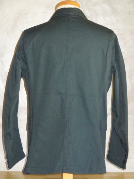 【WORKERS】 今年は、素材を少し軽い8オンスに、また色合いをチャコールグレー・ネイビーにしてLounge Jacketを作りました。さらに、今シーズンお気に入りの素材、起毛ヘリンボンをここでもラインナップ。 チノは袖裏無し・袖口三巻。起毛ヘリンボンはそのままだと着脱ぎの時に少し引っかかりがあるので、袖にキュプラの裏地をつけています。 ともすると、ただのカバーオールに成ってしまうところを、肩パット替わりの背裏、大見返しといったイタリアのジャケットで良く見られる仕様を盛り込んでジャケットらしさを強調しています。巻き縫い、パッカリングといったラフな、着こんで変化していくアメカジ的楽しさと現代イタリア製品に見られる優れた縫製仕様を一つにまとめました。 パターンの特徴は袖。サイドから見ると前に振り、さらに前から見ると前中心に向かってもカーブしています。これはハンガーで吊った状態でも同じ。吊った状態で見て美しく、着た時には人間の立体的な腕の動きに追従して動きやすく、静止した状態では立ち姿が美しくなるように作図しています。今年はワンウォッシュ済の製品を納品。手に入れた時から適度に馴染んだ風合いです。
